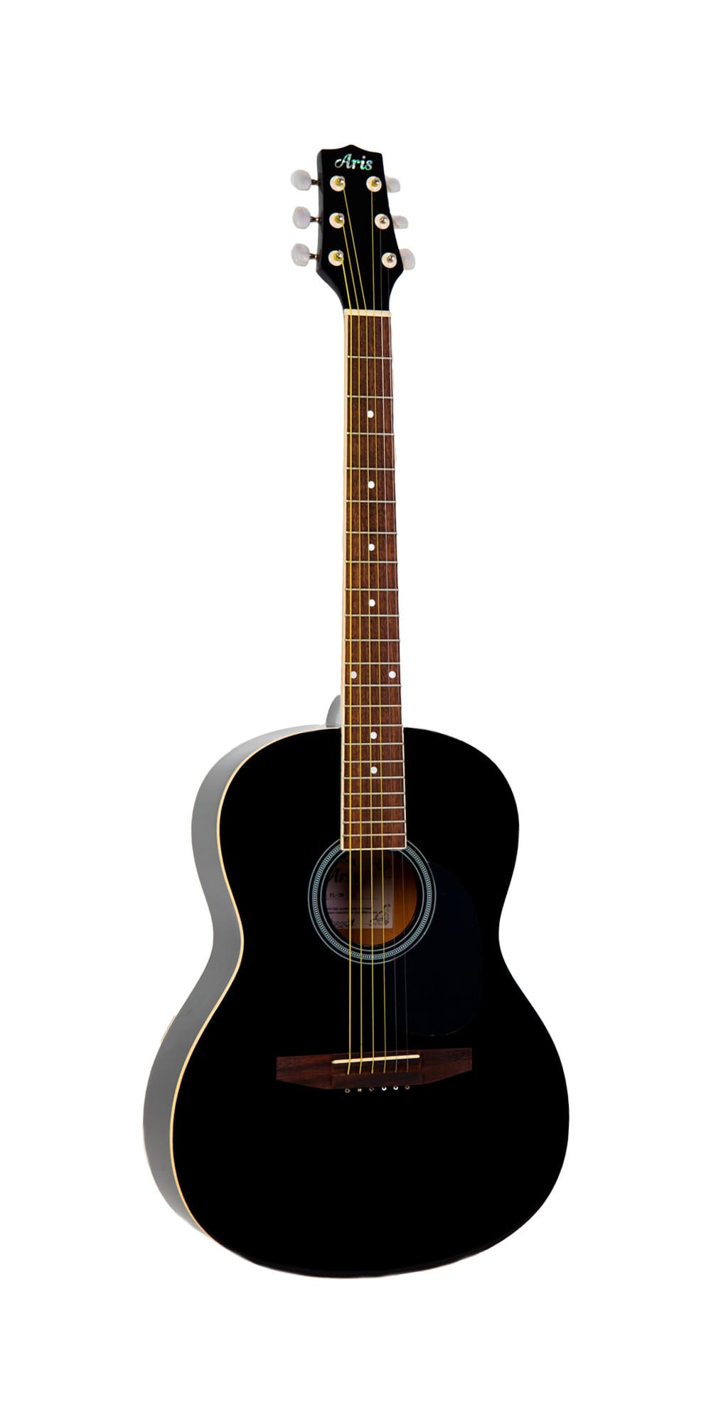 Компактная гитара формата фолк размером 39”, подходящая для начинающих музыкантов и занятий дома. Корпус и верхняя дека выполнены из ламината, что делает инструмент менее чувствительным к перепадам влажности и температуры. Глянцевое покрытие придаёт аккуратный внешний вид, а пластиковая окантовка корпуса и грифа защищает края от повреждений.