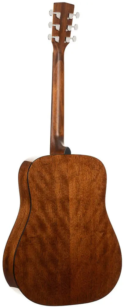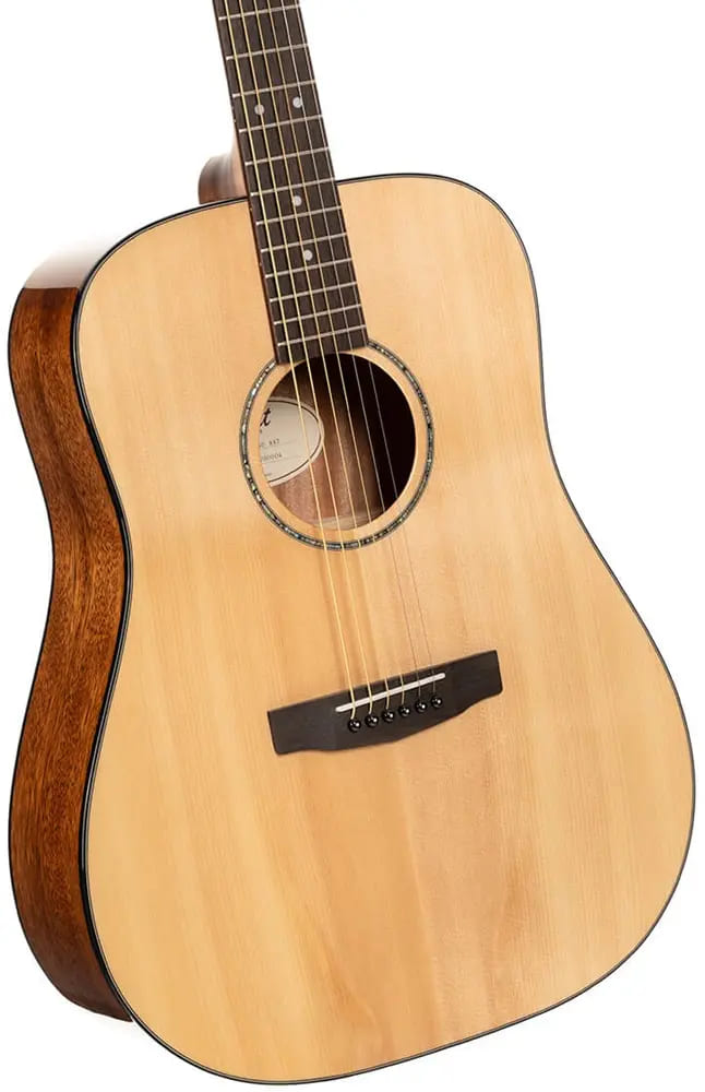 Верхняя дека гитары выполнена из массива ели — древесины, славящейся своей живой динамикой. Благодаря этому гитара звучит ярко и чётко, одинаково выразительно как при игре медиатором, так и при фингерстайле. Нижняя дека и обечайки изготовлены из махагони, придающей звучанию теплоту, мягкость и насыщенность в среднечастотном диапазоне. Усовершенствованная Х-образная система связей усиливает корпус, позволяя верхней деке свободно вибрировать. Это не только повышает устойчивость конструкции, но и раскрывает богатый сустейн и тембровую глубину — гитара буквально дышит с каждым аккордом.