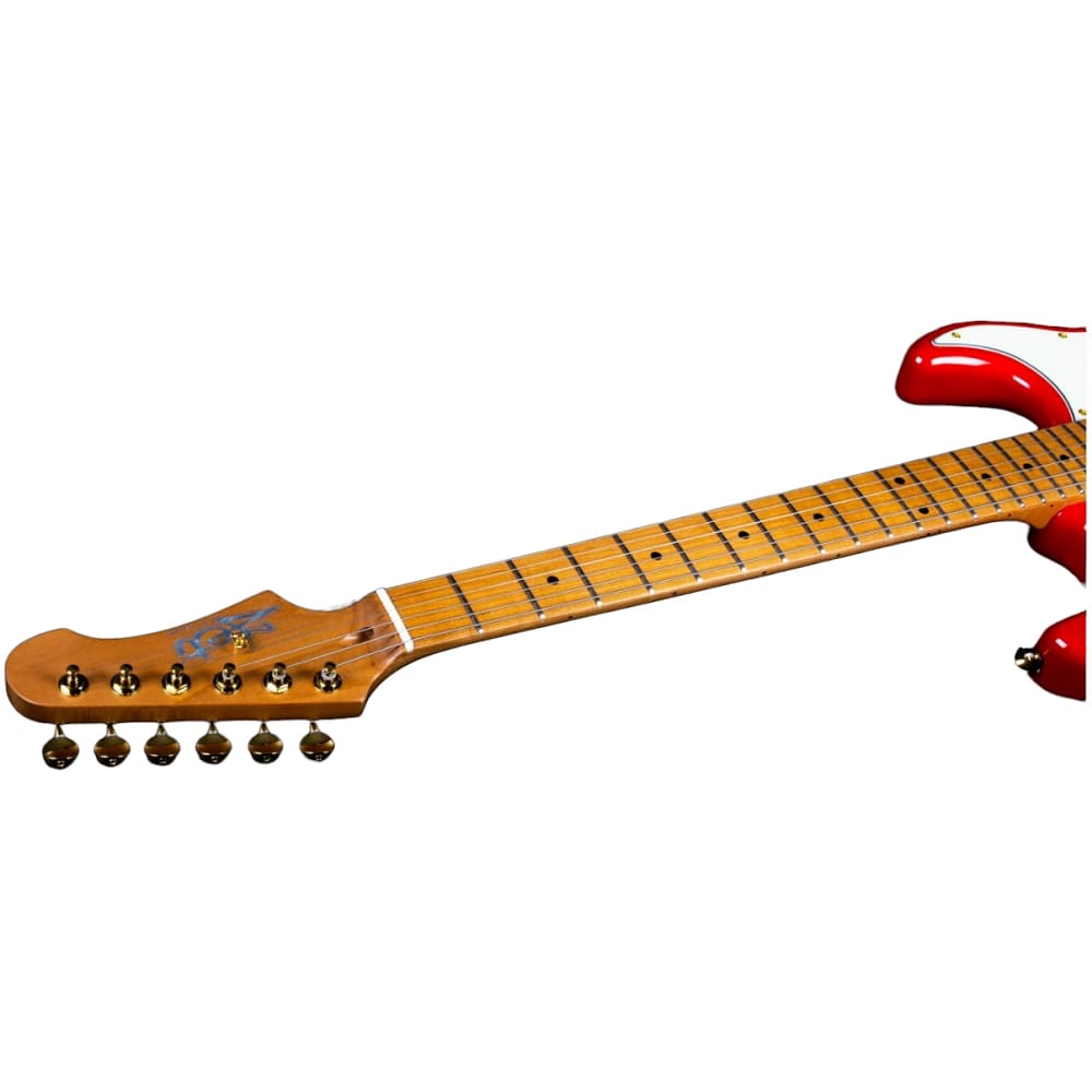 Корпус модели выполнен в классической форме Stratocaster и изготовлен из липы. Этот выбор материала обеспечивает сбалансированность по весу, комфорт и приятное звучание гитары.