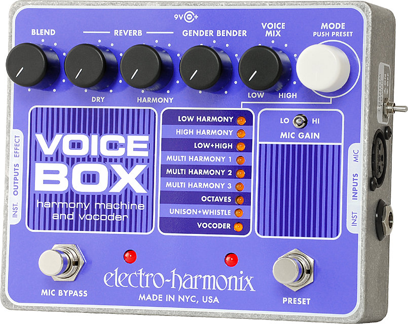 EH Voice Box – Vocal Harmony Machine/Vocoder. В компактной коробке Voice Box упакован многофункциональный вокальный процессор. Пойте, и у Вас будет следующая за Вами труппа бэк-вокалистов. Или используйте встроенный вокодер, чтобы получить классические звуки synth-робота. Процессор окрашивает гармониками звук Вашего инструмента или Ваш вокал в том же самом ключе, что и аккомпанирующий инструмент. Ревербератор студийного качества позволит Вам независимо добавлять глубину к своему вокалу. Подключите свой микрофон или инструмент к прибору и позвольте новому голосу или голосам быть услышанным! |