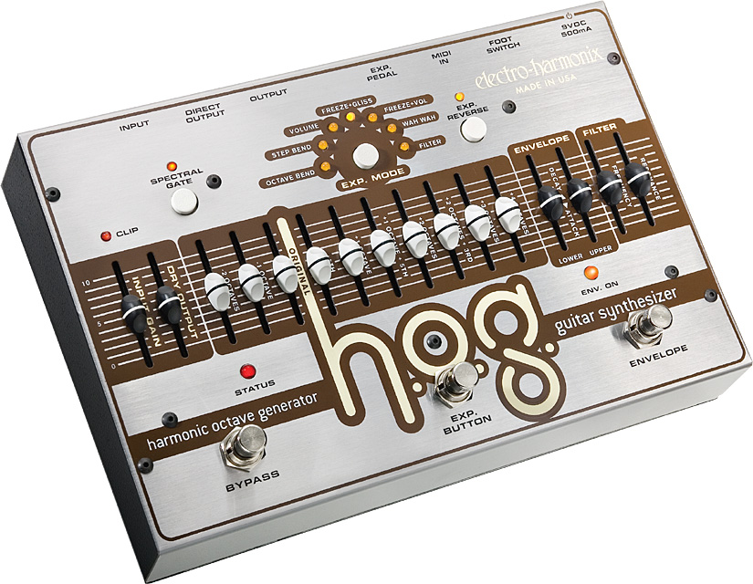 Потворствуйте своим чувствам! HOG является полностью полифоническим гитарным синтезатором, предлагающим полный контроль над 10 полосами октавера. Работа с HOG не вызовет у Вас никаких затруднений и не потребует специальных звукоснимателей при его использовании. С помощью HOG Вы можете получить из своей 6-ти струнной гитары 12-ти струнную, воссоздать реалистичное звучание органа! Прибор удивительно сочетается с гитарой, но также хорошо работает с любым инструментом. В комплекте поставляется ножной контроллер.