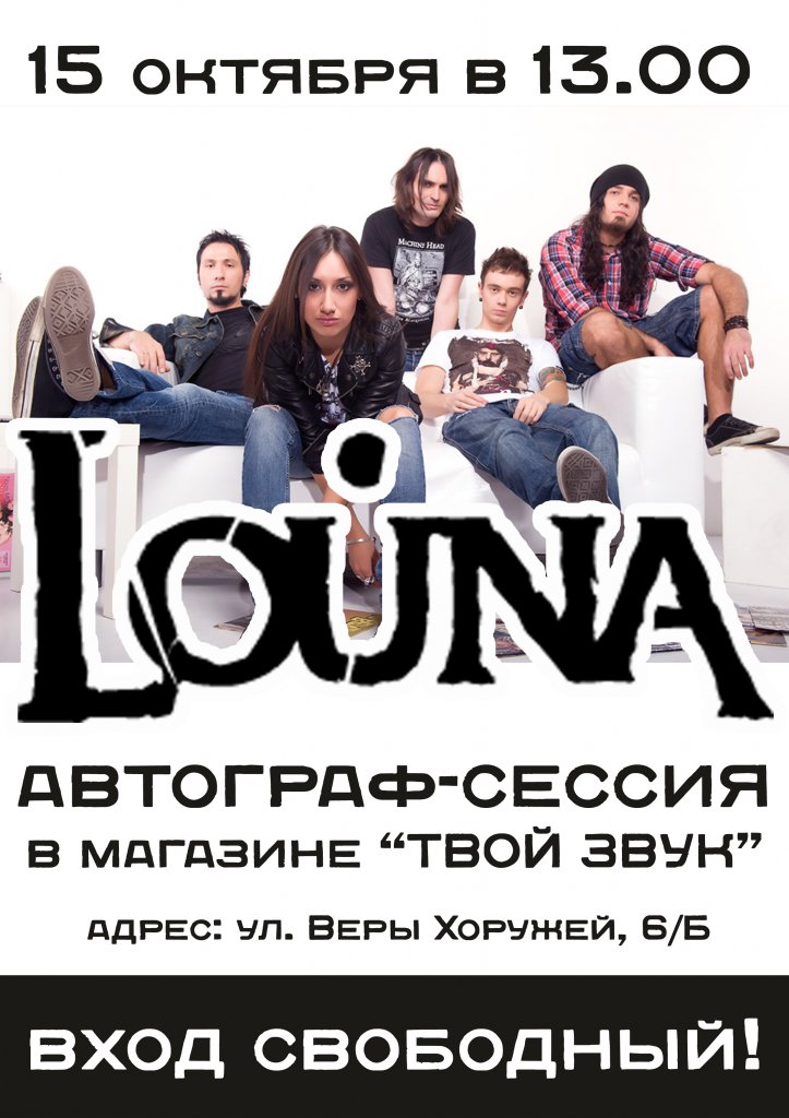 15 октября в 13.00 в магазине "Твой Звук" пройдет автограф-сессия московской рок-группы LOUNA.