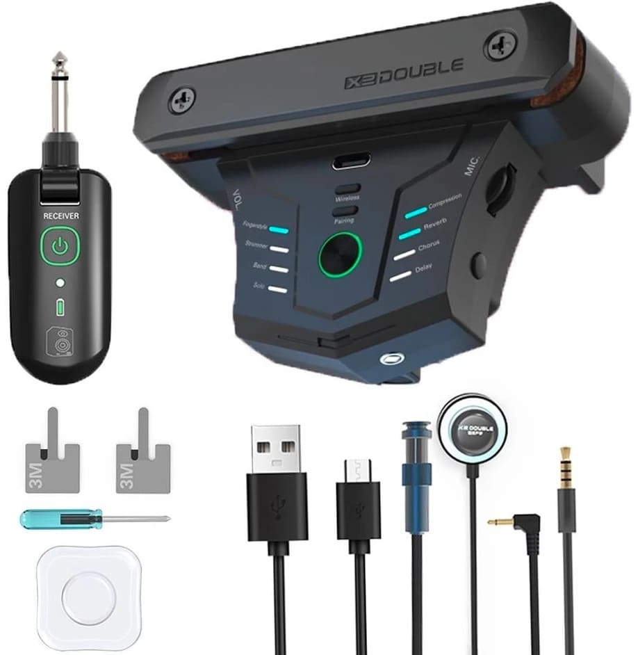 Этот профессиональный аксессуар позволяет подключать вашу любимую акустическую гитару к усилителю, а также способна обогатить тембр вашего инструмента даже без использования внешнего оборудования. Встроенный процессор эффектов в сочетании с системой вибродинамика производит реверберацию, хорус и другие модуляции прямо внутри корпуса гитары при игре без кабеля. Такое решение превращает обычную акустическую гитару в полноценный трансакустический инструмент.