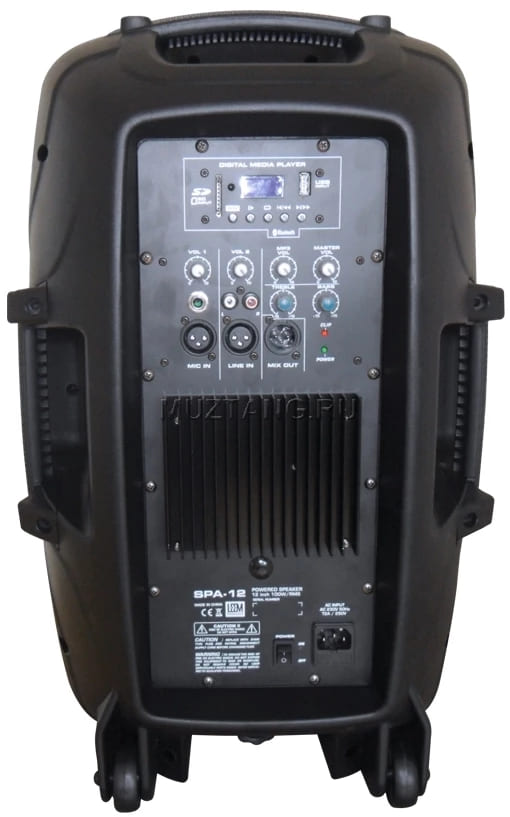 SPA-12 оснащена встроенным MP3-плеером с поддержкой SD-карт, USB-накопителей и Bluetooth, позволяя воспроизводить музыку напрямую без дополнительного оборудования. Для удобства транспортировки предусмотрены боковые ручки и задние колесики, а стандартный стакан 35 мм обеспечивает лёгкую установку на стойку.