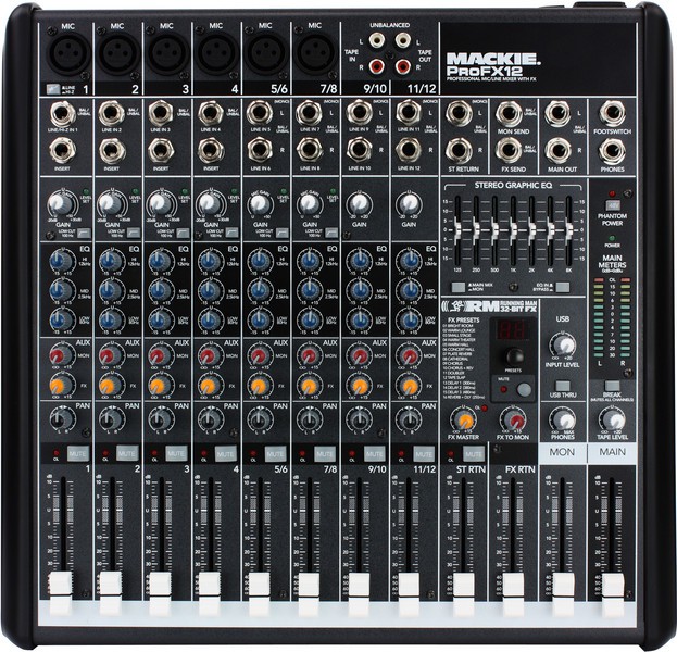 Профессиональный 12-ти канальный микшерный пульт с процессором эффектов и USB Mackie ProFX12